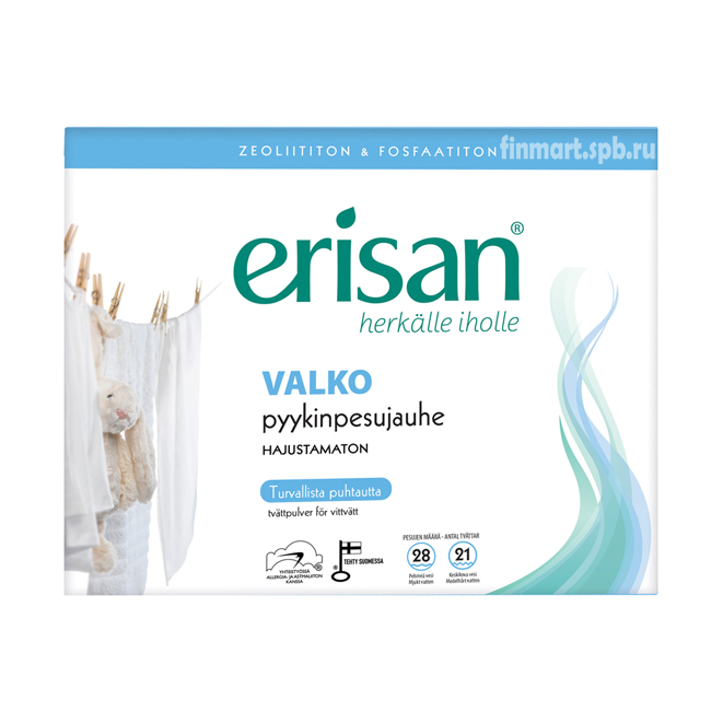 - Стиральный порошок для белого Erisan valko pyykinpesujauhe (гипоаллергенный) - 1 кг.