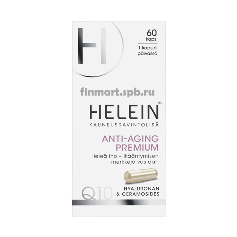 Высококачественная косметическая пищевая добавка для кожи, которая осветляет и борется с первыми признаками старения! Капсулы Helein Anti-Aging Premium предназначены для тех, кто хочет повысить легкость и молодость вашей кожи, а также предотвратить и уменьшить признаки старения. Содержит изученные керамиды из экстракта зерна пшеницы. Витамин А поддерживает здоровье кожи и слизистых оболочек, а витамин Е помогает защитить клетки от окислительного стресса. Кроме того, продукт содержит коэнзим Q10 и гиалуроновую кислоту.