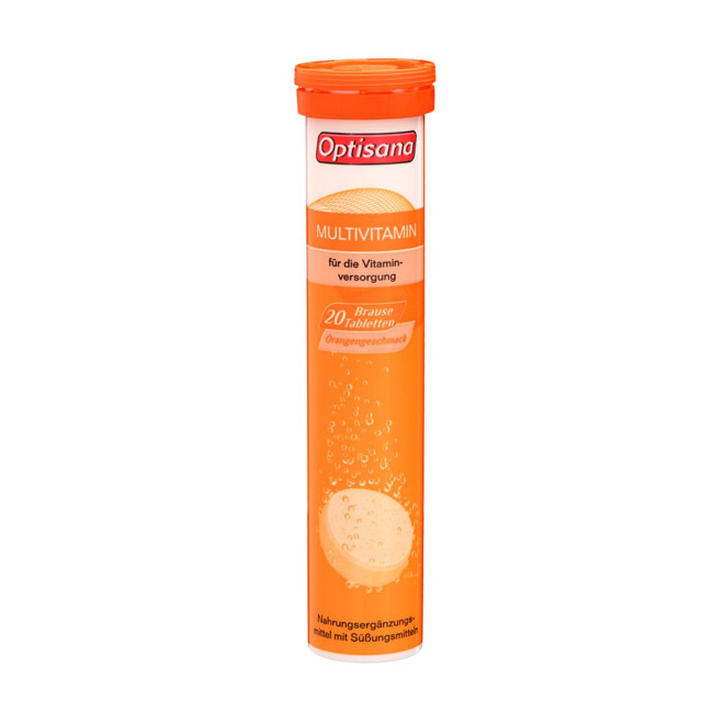 Поливитамины Optisana - в быстрорастворимых шипучих таблетках со вкусом апельсина.