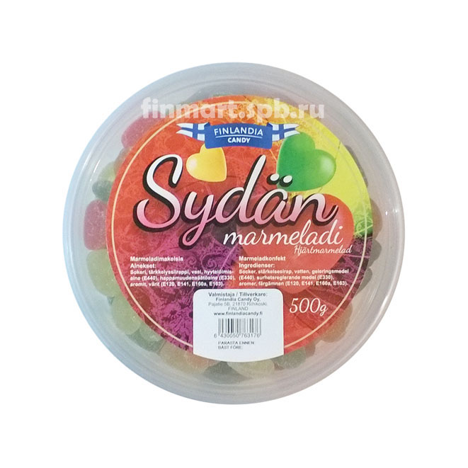 Sydan marmeladi - нежный мермелад ассорти в виде сердечек, клубника, апельсин, яблоко, лимон.