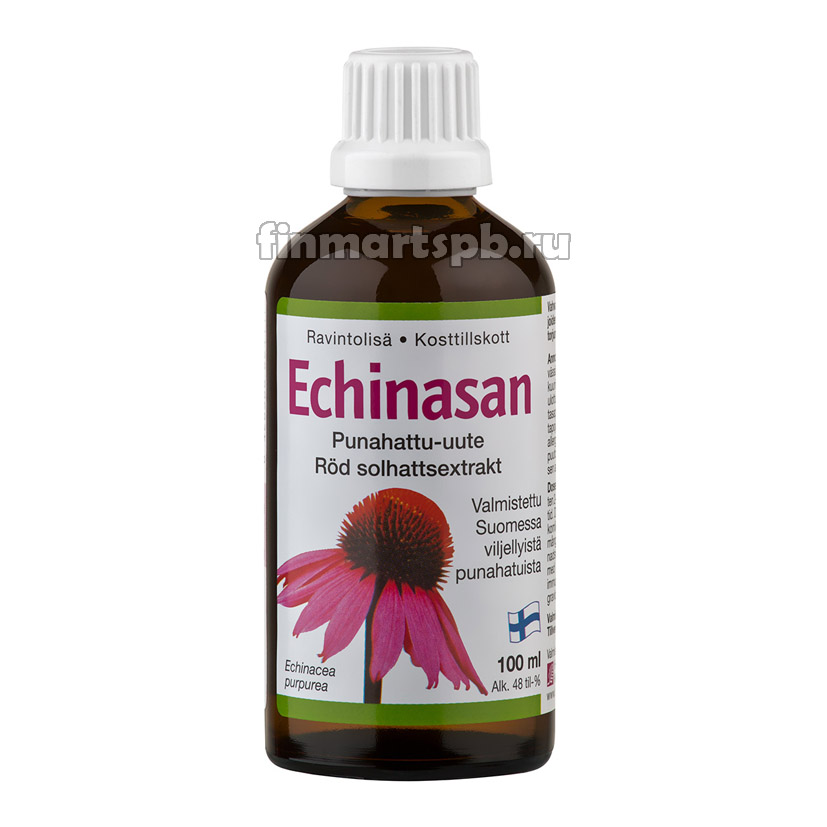 - Echinasan производят из эхинацеи пурпурной, выращенной в Финляндии без применения пестицидов и химических удобрений. Растения эхинацеи используют сразу после сбора, причем для получения экстракта отбирают только лучшие образцы. Echinasan — это высококачественный экстракт эхинацеи пурпурной, на 100 % выращенной в Финляндии. -
