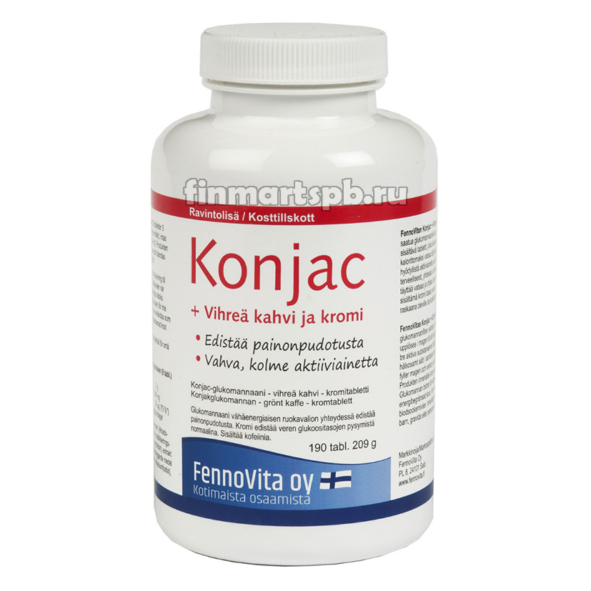 - Препарат для снижения веса FennoVita Konjac + Vihrea kahvi ja kromi, 190 таб.