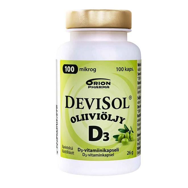 - Витамин Д3 DeviSol 100 мкг Oliivioljy (на оливковом масле) , 100 шт.