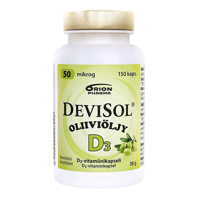 - Витамин Д3 DeviSol 50 мкг Oliivioljy (Девисол на оливковом масле) , 150 шт.